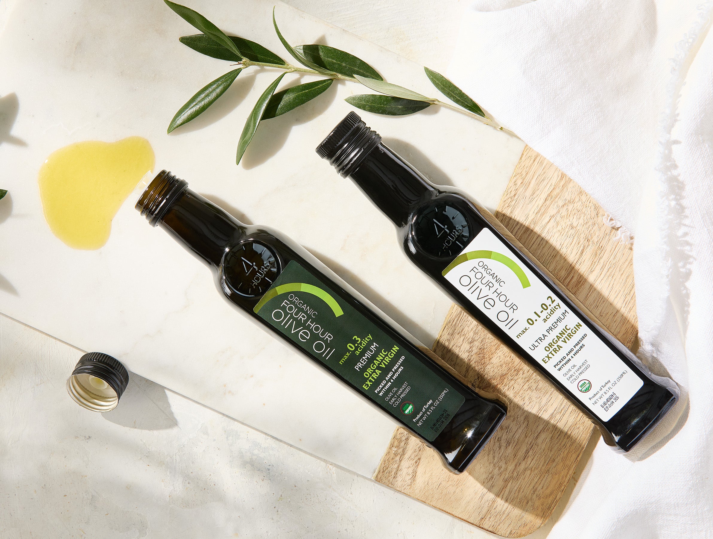 Four Hour Olive Oil is proud to offer USDA organic certified Ultra Premium Extra Virgin Olive Oil and Premium Extra Virgin. Our commitment to quality and authenticity is reflected in rigorous certification standards that ensure every product meets federal requirements for purity, origin, and production practices. Each of our olive oil selections carries USDA Organic certification, guaranteeing transparency and trust in every bottle.